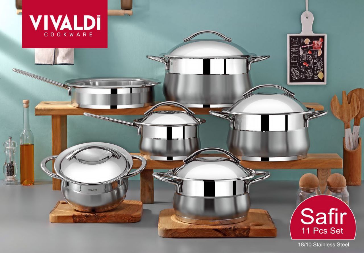 🍳 طقم حلل استانلس فيفالدي – موديل سفير 11 قطعة | جودة أوروبية لطهي مثالي