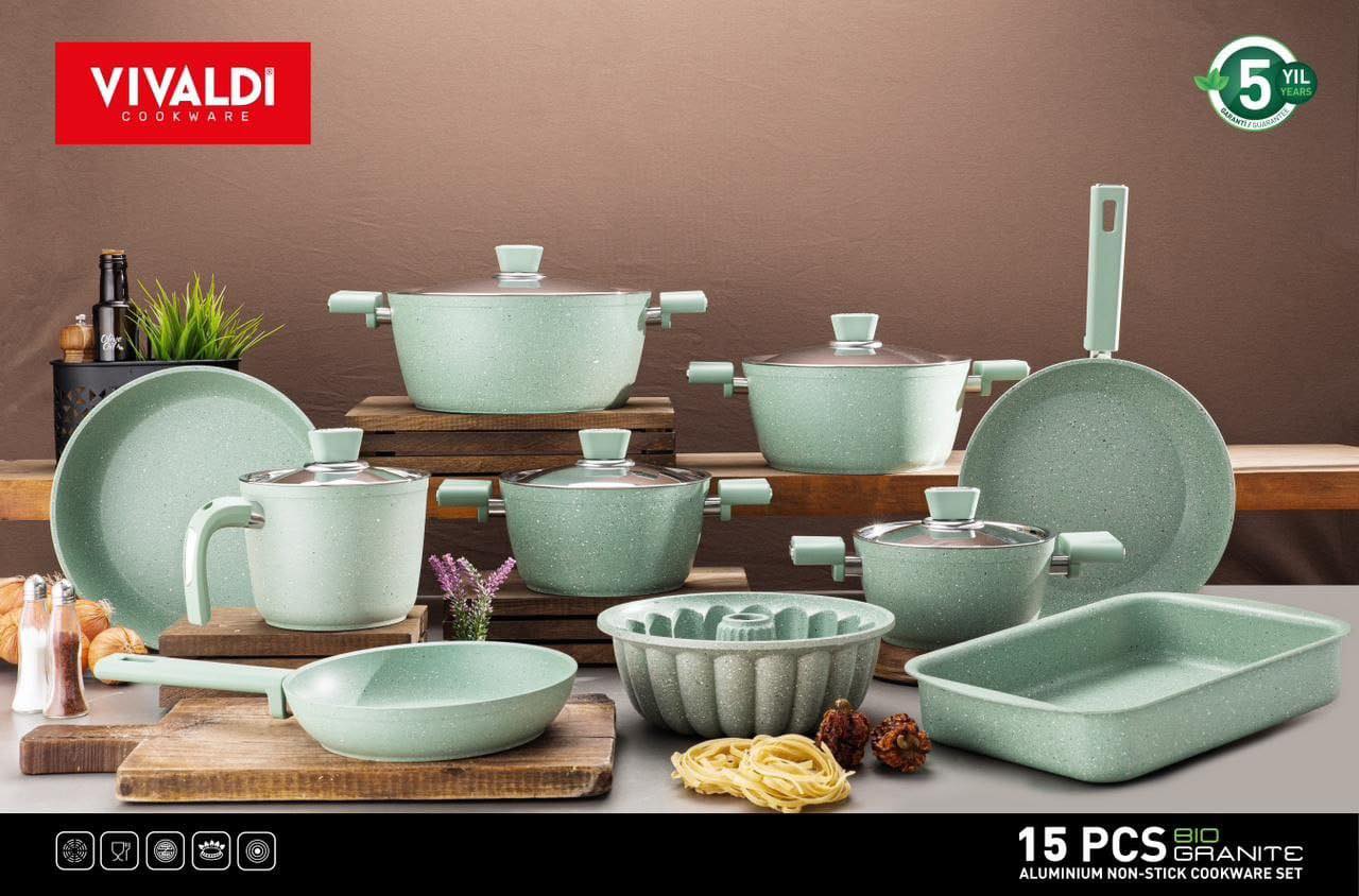 طقم حلل جرانيت فيفالدي، طقم جرانيت 15 قطعة، حلل جرانيت غير لاصقة، طقم فيفالدي للمطبخ، فيفالدي الأصلي، طقم حلل وصواني فرن، أفضل طقم جرانيت للمطبخ العصري، حلل جرانيت تركي