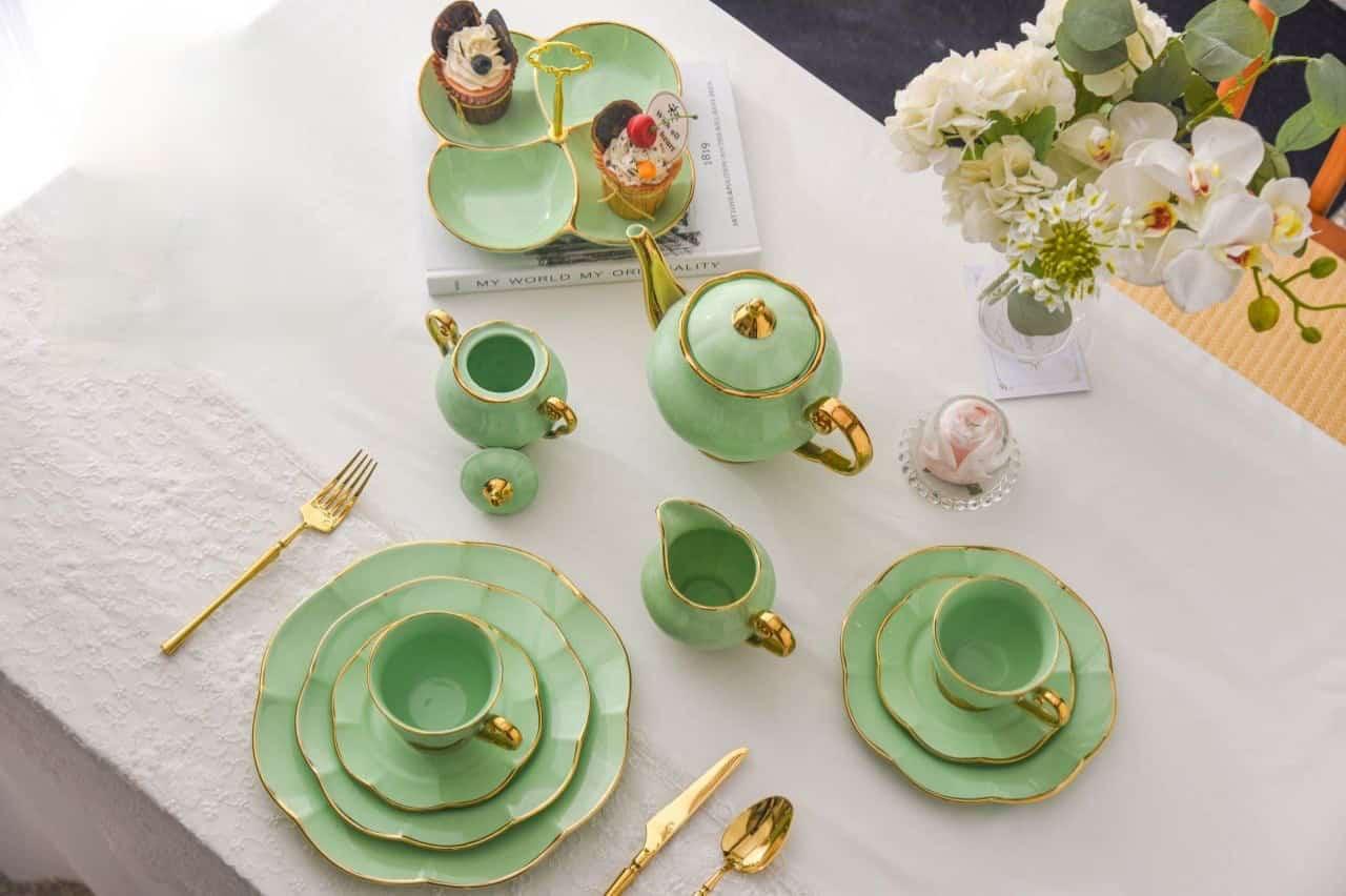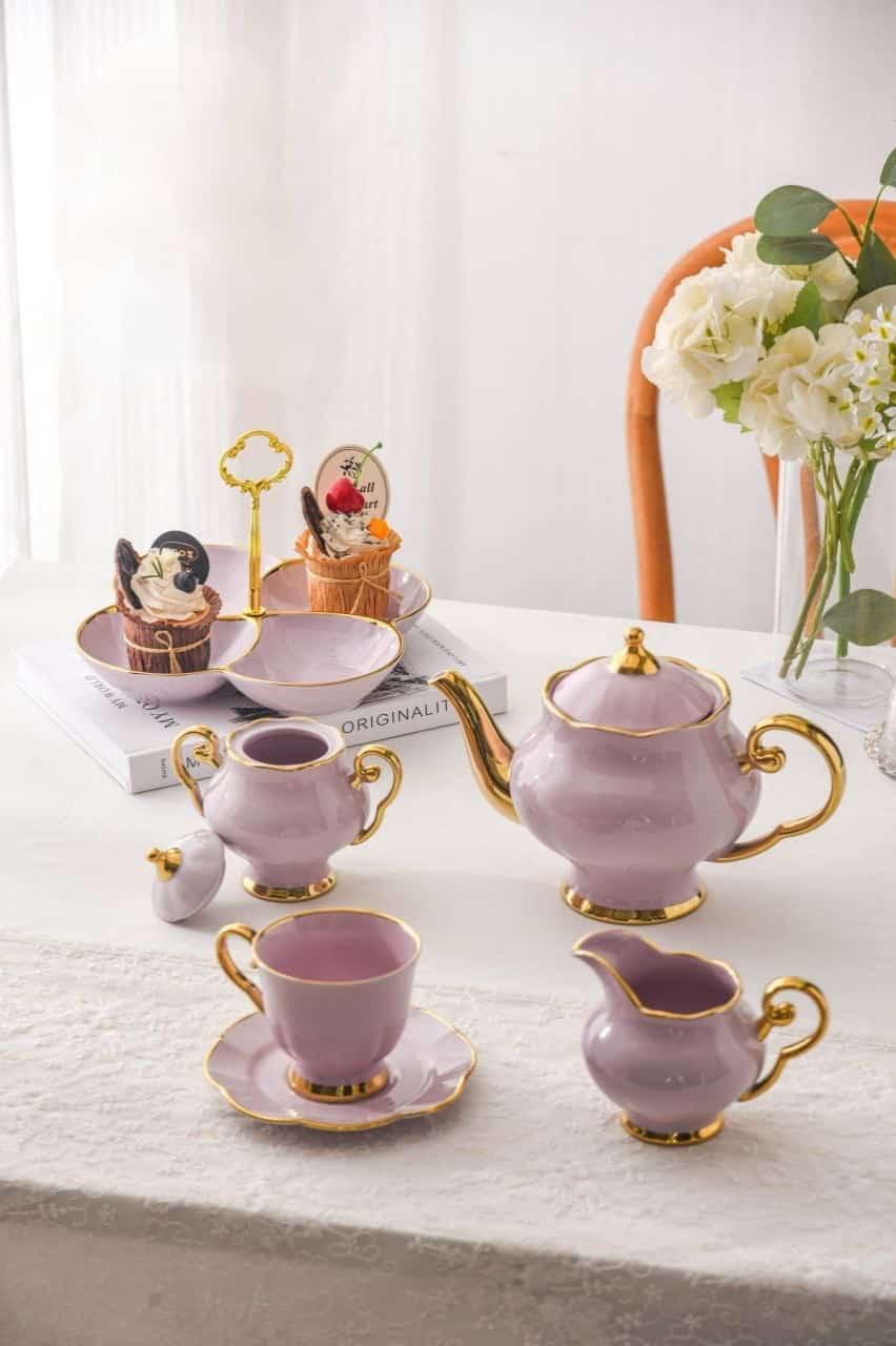 هذا الطقم المميز مناسب لتقديم الشاي، الفطور، والجاتوه في الضيافة الصباحية أو المناسبات العائلية.